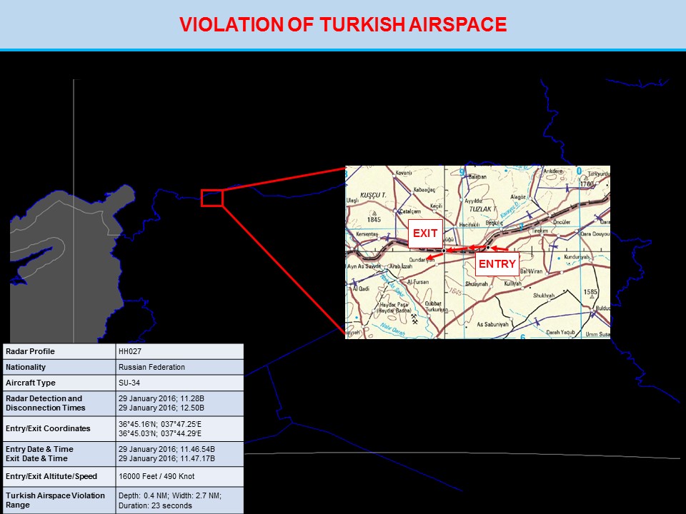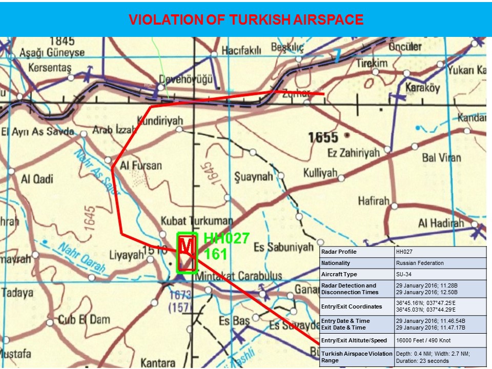 Digital voice recordings and radar images regarding Turkish airspace violation by a Russian Federation military aircraft on 29 January 2016
