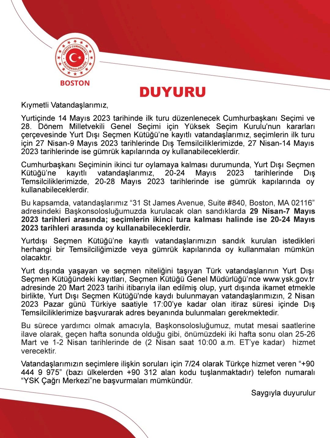 Cumhurbaşkanı Seçimi ve 28. Dönem Milletvekili Genel Seçimine ilişkin güncel duyuru